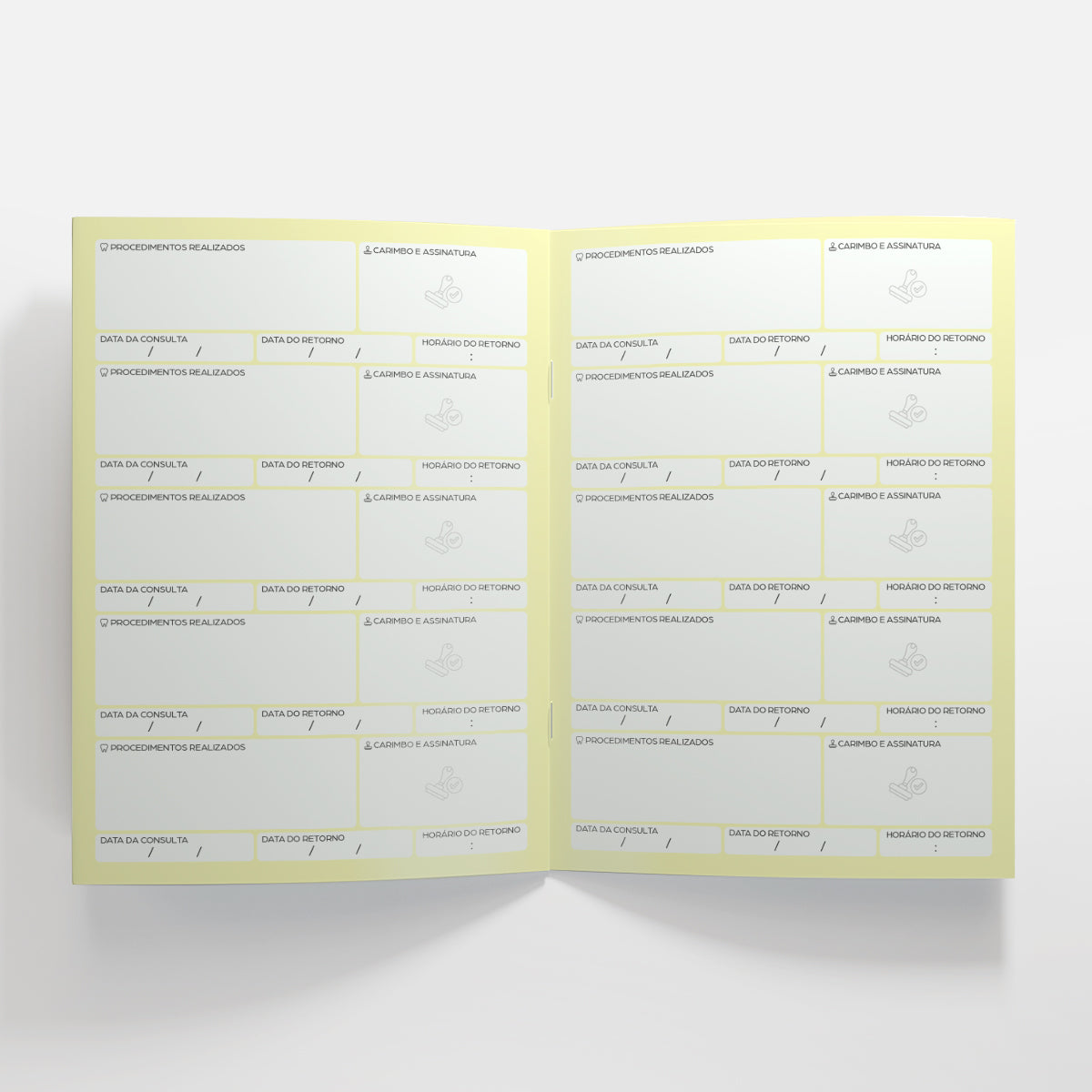 - Número de páginas: 12 páginas, oferecendo espaço adequado para registrar todas as consultas e trocas de dentes.