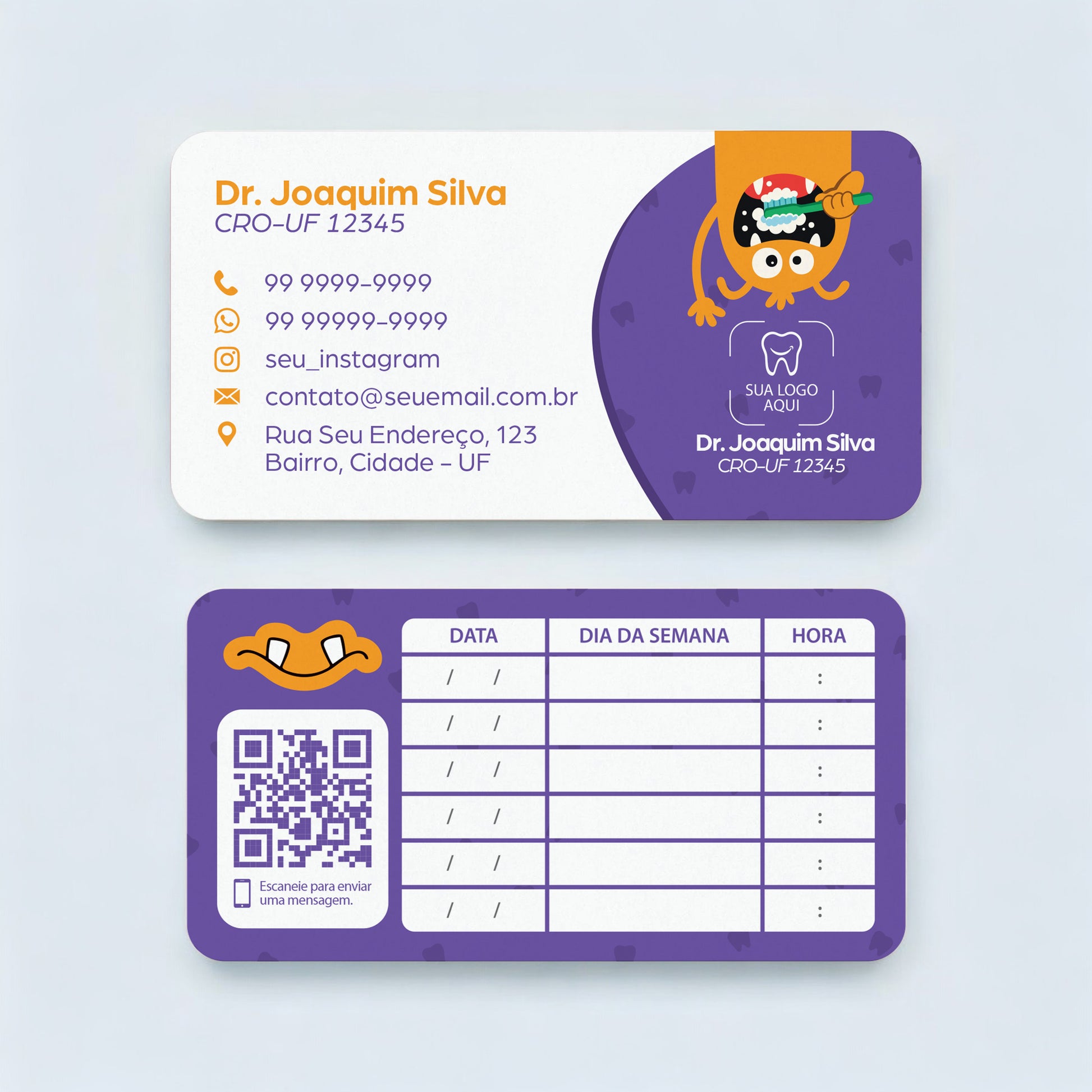 Cartão de Retorno Odontológico é ideal para o agendamento e o comparecimento às próximas consultas. Criado para tornar o acompanhamento do tratamento mais eficiente, esse cartão é uma ferramenta simples, mas essencial para manter a comunicação clara entre o consultório e o paciente. Possui os quatro cantos arredondados, totalmente personalizável, produzido em papel couché 300g, com 8,5 cm de largura por 4,4 cm de altura, colorido frente e verso.