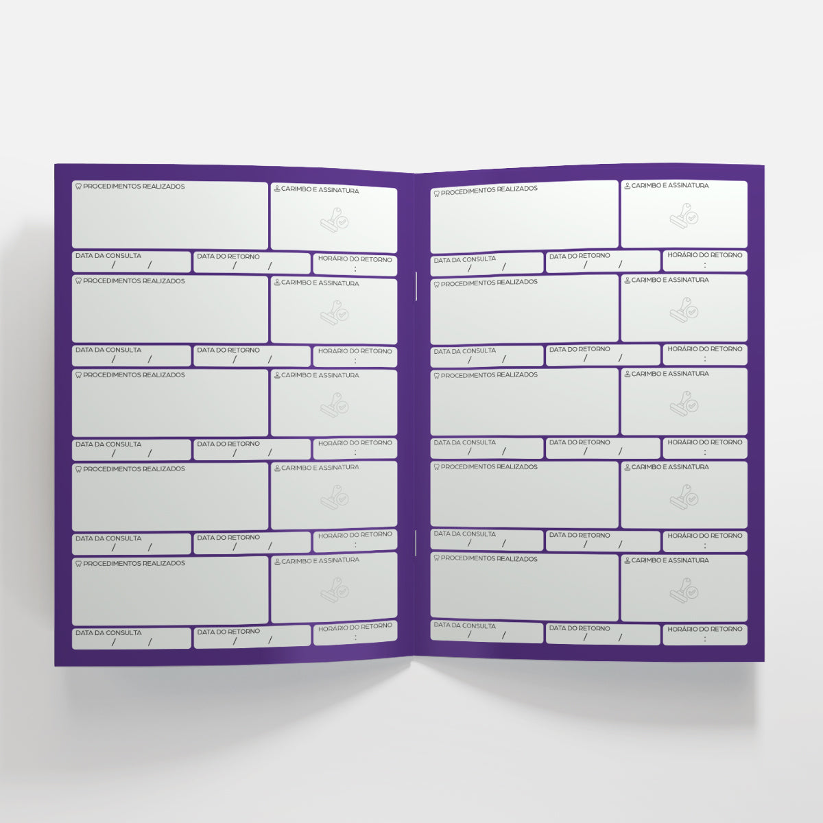 Com um design lúdico e totalmente personalizável, ela ajuda a registrar consultas, procedimentos, orientações e a evolução do tratamento, fortalecendo o vínculo com os pais e incentivando o cuidado contínuo com a saúde bucal da criança.